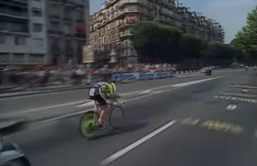 LeMond en la última crono a falta de 4 kilómetros llevaba 32 segundos. En esos 4 kilómetros, le metió 24. Algo solo al alcance de un fuera de serie, de un crack… de un tiro… Su final de crono fue asombroso. Literalmente voló. Por Paris. La ciudad de Fignon. La Ciudad de la Luz. Un ciudad preciosa. Famosísima. Que sale en muchas películas y en la que quiere vivir todo el mundo. En la que quiero vivir yo…