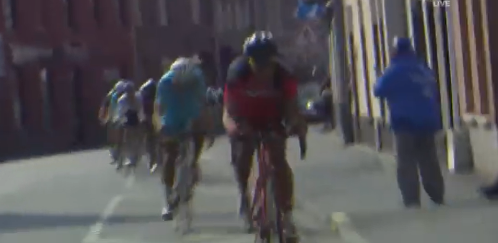 Se llega al final del tramo con Tersptra haciendo de jefe. Marcato lleva unos metros de ventaja y Roelandts, más adelante aún, está haciendo su intento.