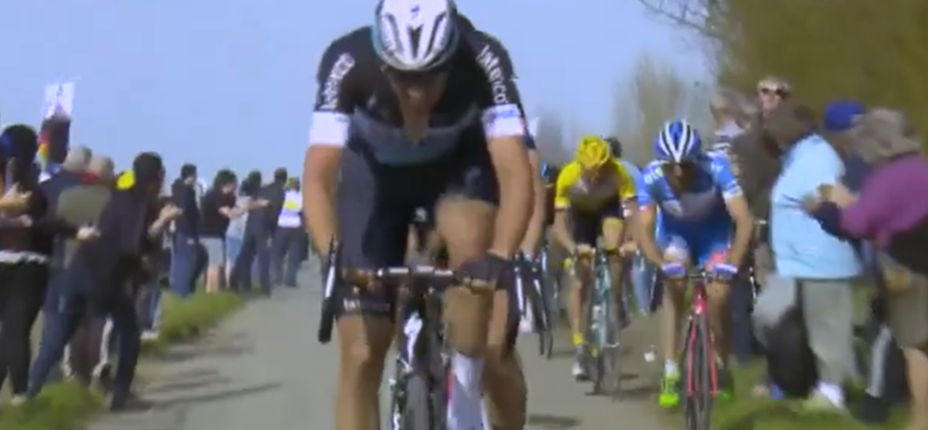A 22 de meta en un tramo ataca Vanmarcke, a su rueda salta Tersptra y luego Degenkolb. Es la primera vez que se ve al Príncipe de las Clásicas hacer un movimiento. Habían pasado más de 230 kilómetros.